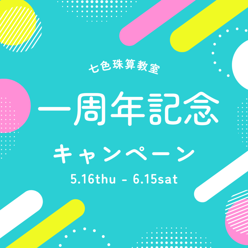 七色珠算教室一周年を記念して、期間限定で入会金割引キャンペーンを行います!