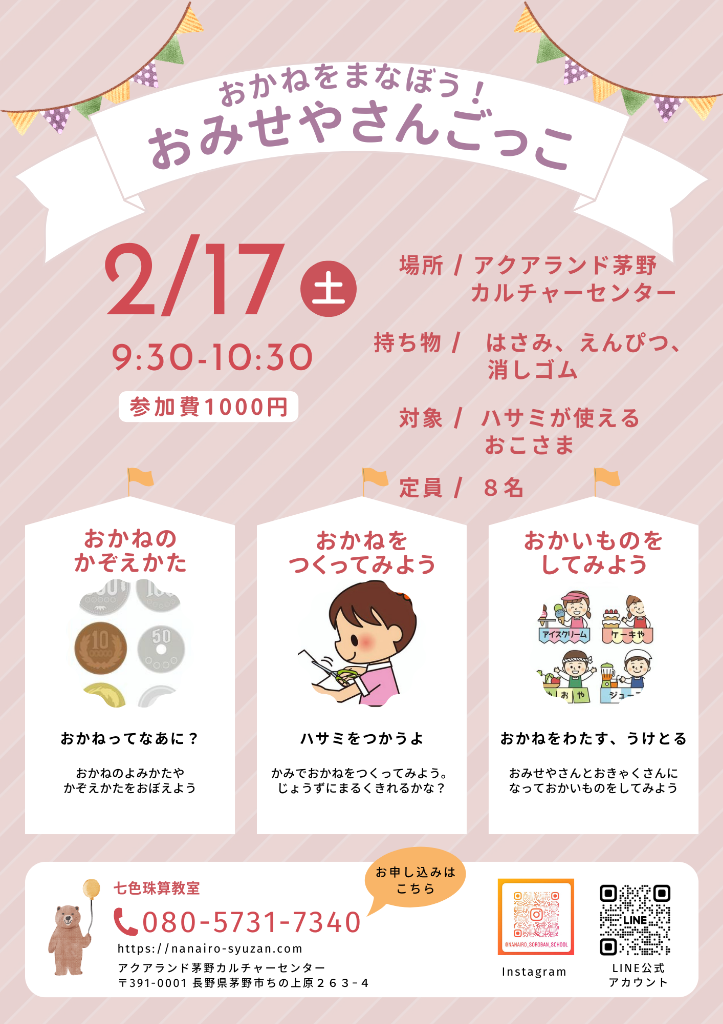 2月9日(金)より子どものそろばん金曜日クラスのみアクアランド茅野カルチャーセンターにて授業を行うことになりました。