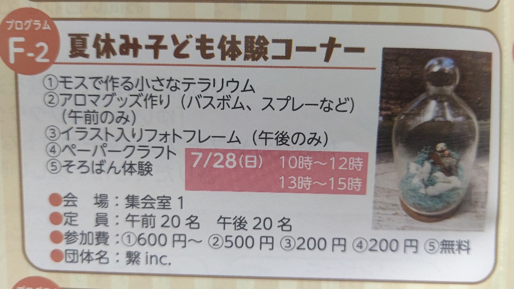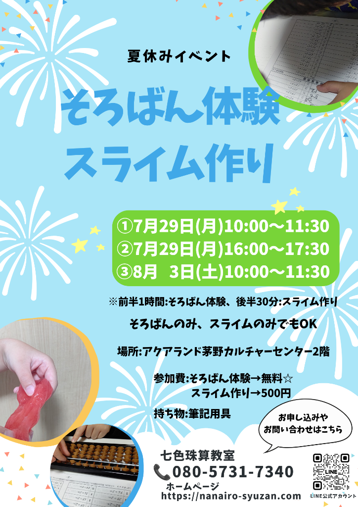 そろばんは7月27日(土)午前と午後、28日(日)午後出店いたします。